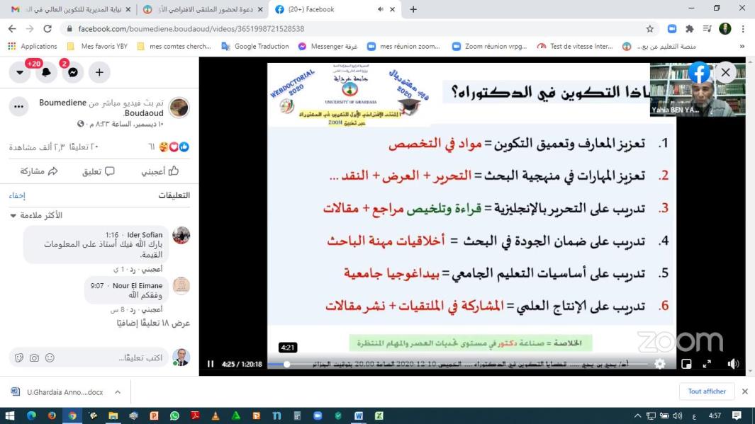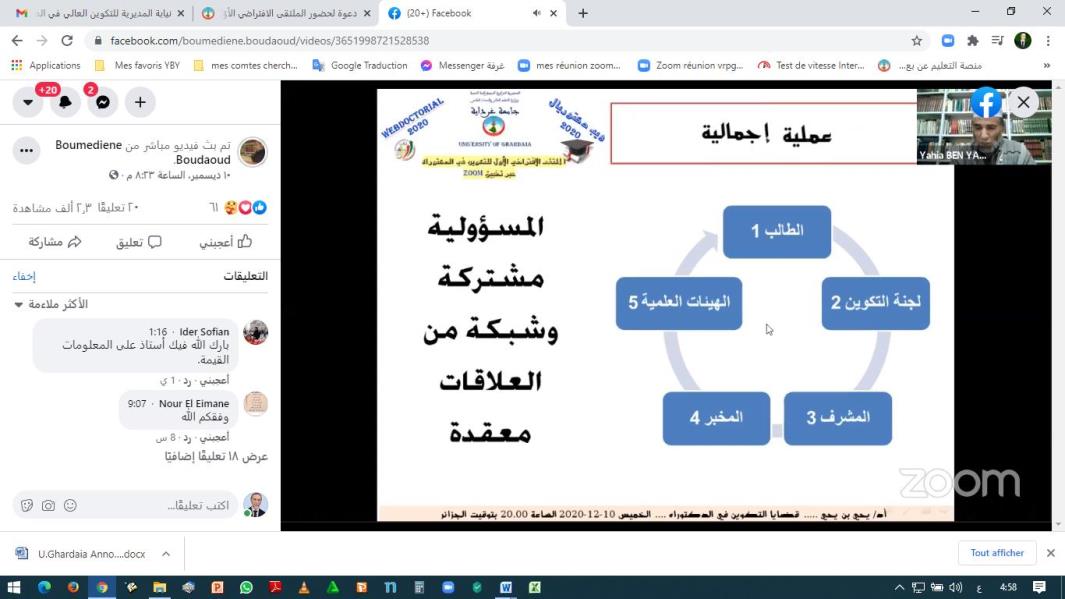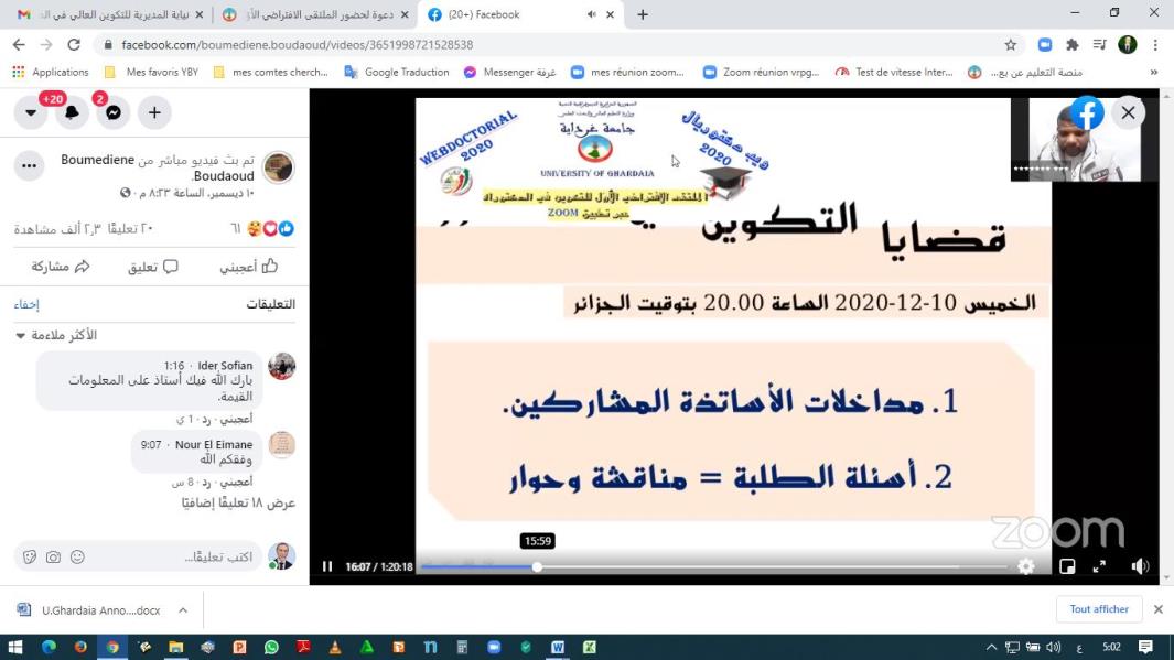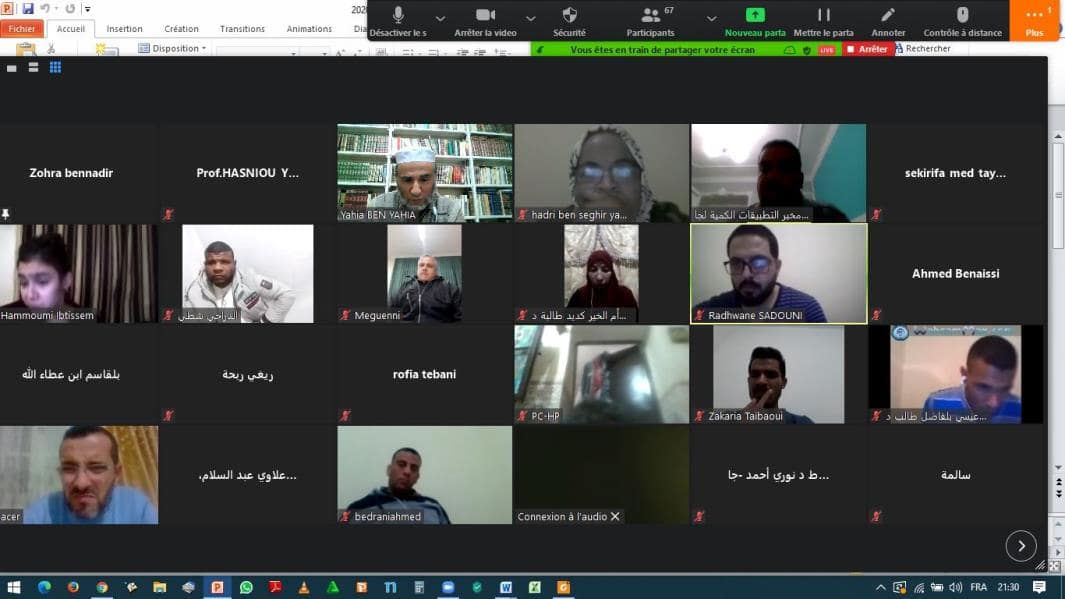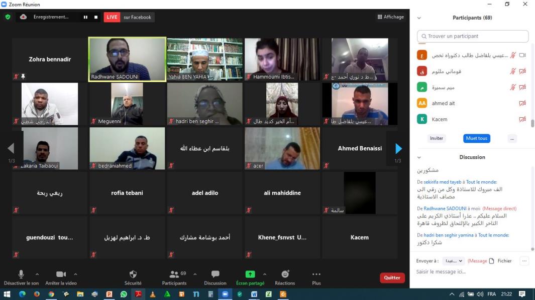 عملا بالبرنامج المعلن من قبل نيابة مديرية جامعة غرداية لما بعد التدرج والبحث العلمي، بالتعاون مع مخبر التطبيقات الكمية والنوعية التابع لكلية الاقتصاد، انعقد الملتقى الافتراضي الأول للتكوين في الدكتوراه يوم الخميس 10-12-2020 مساء وعبر تطبيق zoom، وكانت أولى جلساته العلمية من تنشيط نائب المدير المكلف بالطور الثالث الأستاذ الدكتور يحي بن يحي بعنوان: قضايا التكوين في الدكتوراه، تطرق فيها لبعض النقاط الواجب معرفتها من قبل طالب الدكتوراه، قصد تحفيزه وتحميله المسؤولية بخصوص إسهامه في إنجاح التكوين وتحقيق مخرجاته التي منها صناعة دكاترة من المواصفات المأمولة من حيث عمق التكوين وجودة الأداء، وذلك من خلال معرفة الأحجام الساعية المفترض الالتزام بها ودور المخبر في عملية التكوين والعلاقات بين المشرف والطالب ولجنة التكوين …إلخ وقد تدخّل بعض الأساتذة المسهمين في تنظيم هذه الندوة وتنشيطها أمثال الأستاذة الدكتورة بن صغير حضري يمينة مديرة مخبر الجنوب الجزائري للبحث في التاريخ والحضارة والدكتور رضوان سعدوني نائب عميد كلية العلوم والتكنولوجيا لما بعد التدرج والبحث العلمي وكذا الدكتور بومدين بوداود المدير التقني للندوة عبر تطبيق zoom أصالة عن نفسه ونيابة عن مدير المخبر الداعم لهذا التكوين الأستاذ الدكتور مصطفى طويطي، وقد أثرى هذه الندوة عدد من طلبة الدكتوراه المشاركين بأسئلتهم وتعقيباتهم، سواء من جامعة غرداية أو من جامعات وطنية أخرى، حيث ثمّن الجميع هذا النوع من التكوين الذي يفرض نفسه في ظل التدابير الوقائية من جائحة كوفيد 19، ودعوا إلى ضرورة تعميمه من خلال انخراط جميع المخابر ولجان التكوين في الدكتوراه في هذه العملية، وفي نهاية الندوة، جدد أد/ يحي بن يحي شكره لكل من أسهم في إنجاح الملتقى، وذكّر الحضور بعنوان الندوة العلمية القادمة التي ستكون عن قضايا النشر العلمي من تنشيط أد/ نور الدين بوراس.